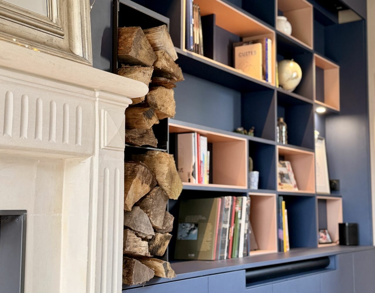Bibliothèque et meuble TV sur mesure pour un intérieur design et pratique. Découvrez nos réalisations d’agencement d’intérieur en Normandie (Deauville, Bayeux, Caen, etc…).